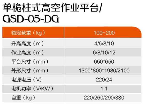 單桅柱式高空作業(yè)平臺GSD-05-DG